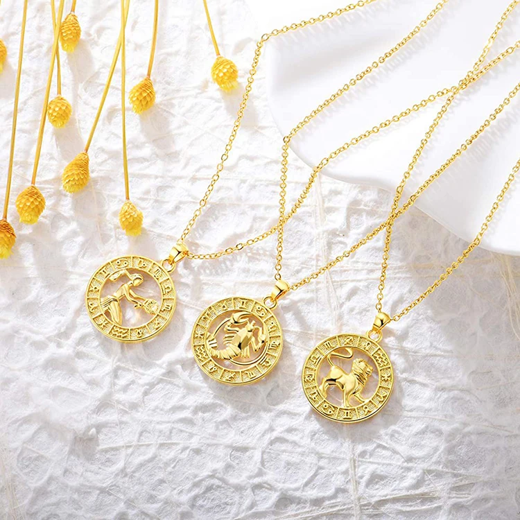 Custom 925 Sterling Silver Zodiac Jewelry 14k 18k Gold Plated Shell Round Horoscope Zodiac Sign Coin Pendant Necklace